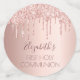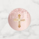 Un arrière - plan d'or rose décoré de parties scintillant d'or faux rose. Personnalisez et ajoutez une date et un nom/événement. Lettres de couleur or rose foncé. Quelques jetons de confetti avec nom et date, d'autres avec une croix. Ajoutez votre propre photo sur deux des puces.