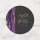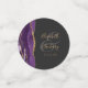 Cette élégante table de mariage confetti design comprend les noms de la mariée et du marié en écriture manuscrite couleur or sur une grande esperluette grise sur un arrière - plan non noir, bordé par une aquarelle violette géode agate design paré de fausse parties scintillant or. Remplacez facilement l'exemple d'image au verso par votre photo préférée.
