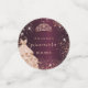 Pour un élégant Quinceañera, 15ème anniversaire. Une couleur arrière - plan à l'aspect faux métallique bordeaux. Décoré avec de la poussière de parties scintillant en faux or rose, une couronne de tiare et une robe. Personnalisez et ajoutez une photo, un nom, un âge et une date. Quinceañera est écrit avec un script de style moderne écrit à la main avec des swashes.