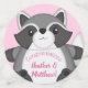 Un design baby shower raccoon mignon avec arrière - plan rose est parfait pour une petite fille en route! Le dessin animé mignon de cet animal boisé est amusant et doux avec un style animal farci, idéal pour un thème de baby shower animal forestier!