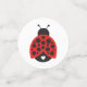 Ce joli jeu de confettis de table d'anniversaire de coccinelle est approprié pour les filles jusqu'à l'âge de sept ou huit. Il présente une adorable petite fille afro-américaine habillée d'une robe de pois rouge et noire et portant des antennes de coccinelle. Les petites poumons de la poule à pois et une fleur rouge vif sont à côté d'elle. Votre texte personnalisé est en blanc sur un arrière - plan rouge. Adorable ! Graphiques de Prettygrafik Design, © Prettygrafik.com