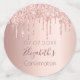 Un rose d'or faux métallique, à l'aspect feuille arrière - plan décoré avec des gouttes de parties scintillant d'or faux rose. Personnalisez et ajoutez une date et un nom/événement. Lettres de couleur or rose foncé. Quelques jetons de confetti avec nom et date, d'autres avec une croix. Ajoutez votre propre photo sur deux des puces.