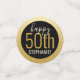 Personnalisé noir et or Grande table d'anniversaire surdimensionnée Confetti Sprinkles pour une fête d'anniversaire moderne et élégant pour tout âge avec Faux Gold Foil Circle Bordure. Ajoutez le nom et éditez l'âge pour toute fête d'anniversaire avec "Cheers to 50 years" et "Happy 50th!" texte.