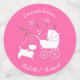 Inclure le grand frère ou la soeur en fourrure bébé dans la fête avec cet adorable baby shower Scotty chien design! Parfait pour un amoureux du chiot avec un bébé en route. Le Terrier écossais est à côté d'un adorable chariot vintage. Le rose est parfait pour un baby shower de fille !