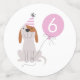 Décor de fête d'anniversaire à thème chien mignon et amusant. Illustration d'un chiot avec casquette de parti rose et ballon. Empreintes de pattes, rayures et os ! Customisez ce produit en ajoutant l'âge et le nom de votre enfant. Conçu pour la pawty d'anniversaire d'une fille !