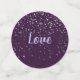 Ces pièces de confettis de table sont un mélange de violets d'orchidées riches du noir à la lumière dans l'extrémité chaude du spectre. Double face avec des commentaires bienveillants pour la mariée et le marié. Graphiques de petite étoile couleur gris-argent grace à l'avant et à l'arrière. Customisez cet objet. Des exemples de textes sont "Jason & Emily", "Félicitations", "Bonheur", "Ensemble comme un", "Amour", "Pour toujours".