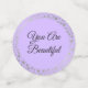 Ces pièces de confetti de table sont un mélange de violet profond riche et de lavande double face avec des commentaires bien désirables pour les titulaires de droits de votre concours. Des graphismes de petite étoile couleur gris-argent ornent les bords avant et arrière. Design simple mais élégant. Des exemples de textes sont "Portez votre couronne", "félicitations", "bonheur", "vous êtes beau", "atteignez vos rêves", "meilleurs voeux". Customisez cet objet ou achetez tel que conçu.
