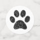 Des empreintes de pattes animaux en noir et blanc amusant motif de parties scintillant imprimé sur la table cardstock saupoudrer des confettis qui fonctionne avec n'importe quel chat animal de compagnie ou enfant, chien, chiot, ou le thème d'anniversaire de chatte, et représentent également des pistes de pied d'une mascotte d'école ou fournir des indices dans une chasse au trésor à un événement de collecte de fonds avec un thème de la nature.