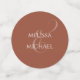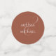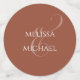 Ce design comprend une table mariage en terre cuite décor confetti modèle avec un élégant script d'ampersand de calligraphie, une photo de mariée, un modèle mariage minimaliste simple, une police de script de calligraphie design, un texte de style simple bloc, une réception de mariage décoration de table personnalisée, une décoration de photo créative de mariage, avec des noms de mariée et de mariée