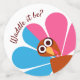 Parfait pour un genre Thanksgiving révèle le baby shower ou pour l'action de grâce familiale. Ce design "Waddle it be?" présente une dinde bleue et rose. Un confetti lumineux et amusant pour deviner le genre du bébé avant la grande révélation!