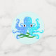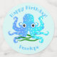 La plus jolie petite pieuvre à tache bleu aqua que vous ayez jamais vue, dans deux nuances de bleu de l'océan avec des algues vertes et les mots Joyeux anniversaire et un nom modèle en bleu assorti. Vous pouvez choisir votre propre couleur arrière - plan. C'est parfait pour l'anniversaire d'un enfant. #nautique #underthesea #octopus