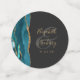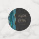 Cette élégante table de mariage confetti design présente les noms de la mariée et du marié en écriture manuscrite couleur or sur une grande esperluette grise sur un arrière - plan non noir, bordé par une aquarelle bleu turquoise géode agate design paré de fausse parties scintillant or. Remplacez facilement l'exemple d'image au verso par votre photo préférée.