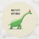 Walter le Dinosaur sur la table confetti pour une fête d'anniversaire pour enfants.
