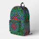 This unique backpack showcases a Persian-style textile mandala art design, combining hand-drawn and graphic techniques for an abstract and eccentric aesthetic. The growth colours symbolize the journey to self-confidence, starting with red for courage and progressing through various hues, culminating in a mature green. Lightweight and durable, this custom all-over-print backpack features adjustable padded shoulder straps, two laptop storage chambers, mesh side pockets, and an identification label.