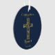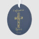 Modern Confirmation gold cross name ornament with a blue background. Personalize with your name and date.