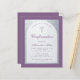 A budget boy confirmation invitation with a modern colour: dusty purple. On dusty purple rectangular background, it has a faux silver foil arch that has inside purple text on white background. The word Confirmation and the name are written in an elegant calligraphic script; the first line is arched text.