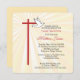 Beautiful invitation card for your son's Confirmation. Golden rays are shining behind a cross in red and a white dove. The red is the colour of Confirmation and the dove symbolizes the Holy Spirit. Personalize the text to make it perfect for your needs for his Confirmation. The corners of this square card are rounded adding a cohesive element with the rounded edges of the cross.