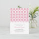 This modern and simple 4.5 x 6.25" Confirmation invite features a pink geometric pattern with a cross interwoven. Ideal for a girl's religious celebration, it can be customized with your child's name and the event details.