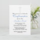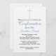 Élégant fils de confirmation avec simple croix d'argent peinte à la main avec des accents d'or. Confirmation et nom de l'enfant est écrit dans un joli script bleu cornflower. Backside a un arrière - plan blanc avec l'image croisée et le libellé, Enfant de Dieu en texte argenté. Oeuvre originale et design par © 2018 TamiraZDesigns.