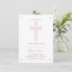 This modern confirmation invite features an elegant drawn pink and white floral cross. Ideal for a girl's religious celebration, it can be customized with your child's name and the event details. The background colour can also be changed to your liking.