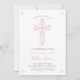 This modern 5"x7" confirmation invite features an elegant drawn pink and white floral cross. Ideal for a girl's religious celebration, it can be customized with your child's name and the event details. The background colour can also be changed to your liking.