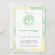 This stylish and modern confirmation invitation features a stained glass rosette church window and a watercolor style border and back side of the invite. It is yellow and green and has a gender neutral look that could be used for a boy OR girl OR both (twins, multiples). The text can be customized for your special religious occasion.