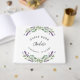 A stylish white background decorated with violet lavender flowers and eucalyptus greenery. Personalize and add a name.