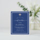 A modern, elegant and invitation. A navy blue background decorated with white frames and a golden cross. Personalize and add a name and details. White text.
