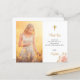 Une carte de remerciements de confirmation moderne et élégante. Un arrière - plan blanc chic décoré d'une croix dorée et rose vif, rose or floral. Personnalisez et ajoutez votre photo, merci note et nom.