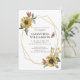 Composed of cursive script and serif typography; All against a backdrop of wooden background at the back of the card and happy sunflower flowers.