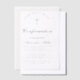 This minimalist, black and white transparent confirmation invitation has just simple text on transparent background. The occasion and the name are written in an elegant calligraphy. In the upper part there is a simple cross, with arched text above it. The cross and the text are black, the background is transparent white.