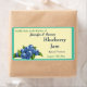 Un tas de bleuets mûrs avec des feuilles derrière eux sont cachés dans le coin inférieur gauche de ce étiquette avec un arrière - plan de jaune pâle tout entouré d'une bordure et arrière - plan de vert turquoise modéré qui en font un étiquette parfait à utiliser sur vos pots de confiture de bleuets ou de confitures maison. Le texte est en modèle afin que vous puissiez le modifier à votre guise.