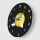 Cute reverse dial wall clock with a confused face in the centre on a black background. There is no text on this product but can be added if desired, if you would like help to customize your product please contact me through my store and i will be very happy to you.