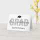 Play on words congratulations greeting card for the graduate. This graduation card features a students cap, the class year, their name, and the word "congradulations".
