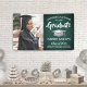 Add an elegant personalized touch to college or high school graduation party decorations with this custom photo green, white and silver banner. Design features a dark green ombre background, faux brushed stainless steel graduation cap, stylish modern typography, handwritten style script calligraphy, and one picture of the graduate, such as a senior picture or image from the commencement ceremony. Please note that silver is grey printed colour, not metallic foil. This party sign is a stylish way to celebrate the special day. Congratulations to the graduate!