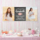 Add a personalized touch to college or high school graduation party decorations with this custom photo banner. Design features a dark grey faux chalkboard background, trendy pink rose gold faux metallic foil mortar board, stylish modern typography, handwritten style script calligraphy, and 2 photos of the graduate, such as senior pictures or images from the commencement ceremony. This party sign is an elegant way to celebrate the special day. Congratulations to the graduate!