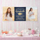 Add an elegant personalized touch to college or high school graduation party decorations with this navy blue and gold custom photo banner. Design features a faux gold foil mortar board, stylish modern typography, handwritten style script calligraphy, and 2 photos of the graduate, such as senior pictures or images from the commencement ceremony. Please note that gold is printed color, not metallic foil. This party sign is a stylish way to celebrate the special day. Congratulations to the graduate!