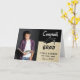 Congrats Grad Black Rustic Photo Graduation Card. Congratulate a grad with this awesome card with a photo. Graduation card with graduation cap, text Congrats Grad, a name of the graduate, school name and Class of. Change or erase the message inside the card. Beige rustic texture and black background.