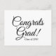 Congrats grad black and white custom classic script text and class year graduation Postcard.