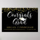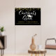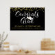 Celebrate your graduate with a custom color, personalized poster sign (shown in black, gold and white). Hang at a graduation party. The design features faux gold glitter confetti and CONGRATS GRAD in a modern calligraphy script typography in your choice of colors. Personalize with your graduate's name, school/university, graduation year or your custom text. CHANGES: Change any text font style, color, size, spacing and placement and/or background color by clicking EDIT. POSTER OPTIONS: The sample is shown on a 36x24" Value Paper (Matte) poster--other sizes and paper quality or canvas are available on the ordering page or the design can be transferred to another product like a banner, foam board, tapestry etc. ASSISTANCE: For help with design modification or personalization, color change, resizing, transferring the design to another product or if you would like coordinating items, contact the designer BEFORE ORDERING via the Zazzle Chat MESSAGE tab below or email makeitaboutyoustore@gmail.com.
