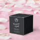 Thank your graduates with these elegant black and white graduation favour boxes. Featuring a sleek black background with white text, each box displays the graduate's name, school, and the phrase “Congrats Grad” in a stylish script font. The laurel wreath emblem adds a touch of sophistication, making these favour boxes a perfect memento for graduates to remember their special day. Ideal for high school, college, or university graduation parties, these boxes can be customized with the school's colours and logo to create a personalized touch.