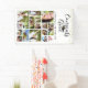 Easily create a fun photo collage of 17 pictures of your graduate with this banner sign featuring a modern, chic script typography CONGRATS GRAD title design with graduation cap and gold glitter confetti border against an editable white background colour. PHOTO TIP: For fastest/best results, choose a photo with the subject in the middle and/or pre-crop it to a similar shape as shown BEFORE uploading. CHANGES: Change the background colour or text font style, size, colour and placement of the name by clicking on CUSTOMIZE FURTHER. Contact the designer via Zazzle Chat or makeitaboutyoustore@gmail.com if you'd like this design modified, on another product or would like coordinating items.