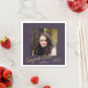 This graduation party paper napkin features a square picture and is accented with gold script text on a dark purple background. The script text reads: Congrats Grad. Personalize with your favourite senior photo for a fun accent to your grad party celebration.