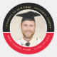 Congrats Grad Photo Year Black Red Graduation Classic Round Sticker
