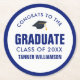 Congrats Graduate Cap Class 20XX Bold Blue Custom Round Paper Coaster
