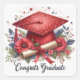Congrats Graduate Floral Red Graduation Cap and Diploma Envelope Seal