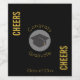 A bottle label which says Congrats Graduate and Class of 20xx. Cheers written on the side. Designed with a graduation cap on a semi-transparent white circle. Set on a black background. Simple yet stylish.