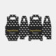 A pattern of white graduation caps appears on this black favour box. On the front and back, there are three lines of display text. The top line says 'Congratulations' in an elegant faux gold script. The other lines are white text for the graduate's name and the year the student is graduating.