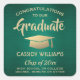 Congratulations Brushed Green and Gold Graduation Square Sticker