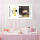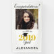 This vertical banner features a graduation design with a square photo frame for a picture of the graduate. Personalize this modern banner with the graduate's name. The text reads: Congratulations! Class of 2019 Grad. The design is accented with calligraphy text and a graphic of a mortarboard.